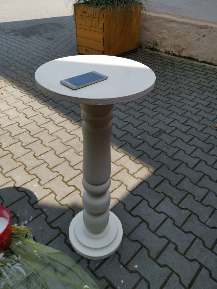 - … damit die neue weiße Farbe drauf kann. Perfekter Smartphone-Ablage-Platz!