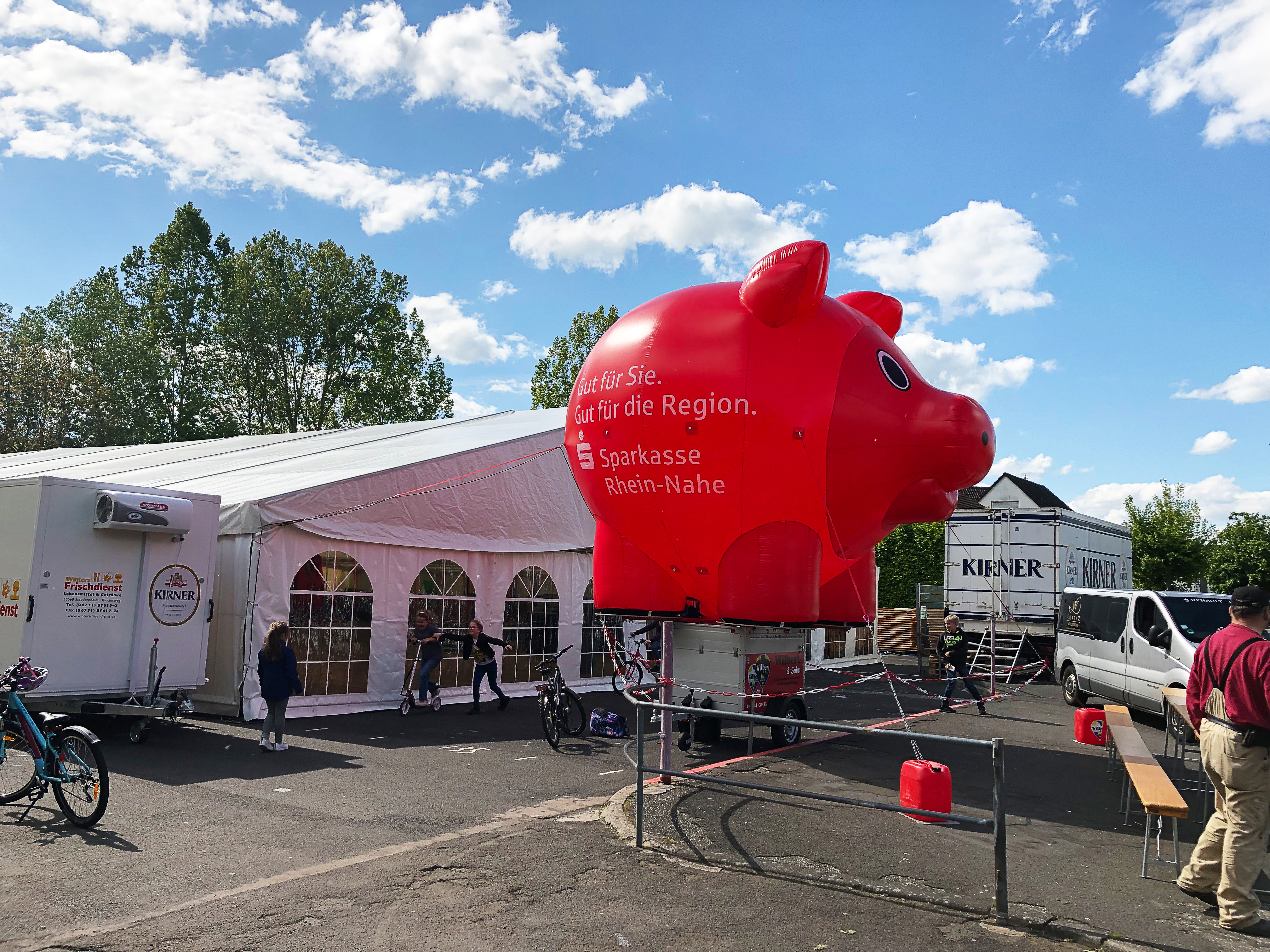 - Unsere Sparkassen-Wutz begrüßte die Gäste vor dem Festzelt.